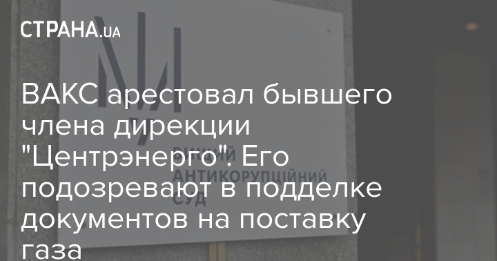 ВАКС арестовал бывшего члена дирекции "Центрэнерго". Его подозревают в подделке документов на поставку газа