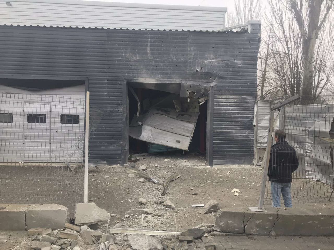От прямого попадания пострадал пункт выдачи гуманитарки в помещении школы, погиб соцработник, ранены две женщины.