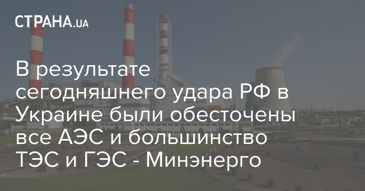 "Сегодняшний ракетный обстрел привел к временному обесточиванию всех атомных станций, большинству тепловых и гидроэлектростанций. Также поражены объекты электропередачи.