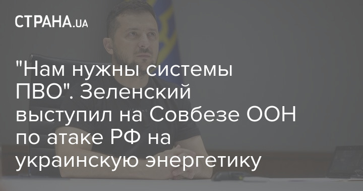 "Нам нужны системы ПВО". Зеленский выступил на Совбезе ООН по атаке РФ на украинскую энергетику