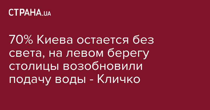 По состоянию на утро четверга, 24 ноября, без света остается 70% Киева. Водоснабжение в столице частично восстановлено.