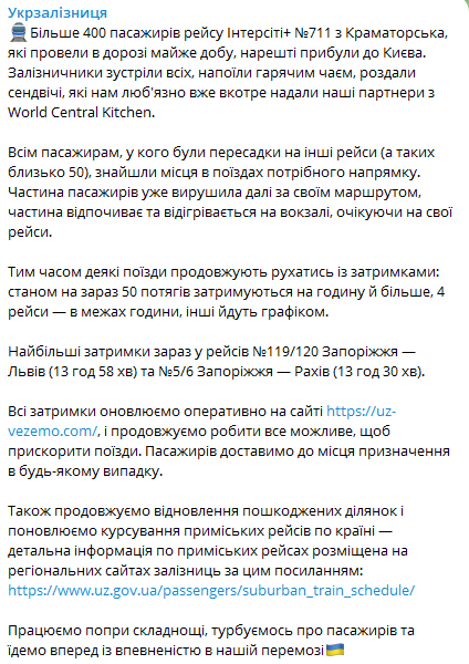 Об этом сообщает телеграм-канал "Укрзализныци".