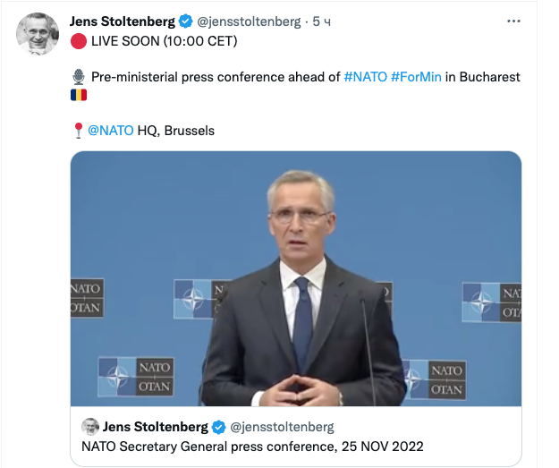 При этом генсек НАТО Йенс Столтенберг заявил, что Германия должна сама решать вопрос передачи Украине ЗРК Patriot. Трансляция его выступления велась в Twitter.