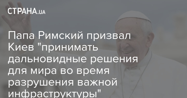 Папа Римский Франциск призвал власти Киева "принимать дальновидные решения для мира и развития экономики во время разрушения важной инфраструктуры".