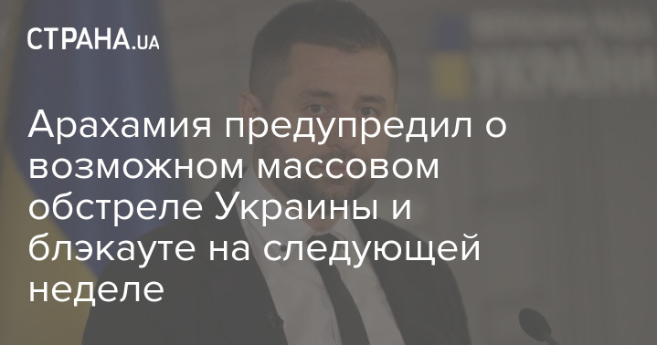 Глава фракции "Слуга народа" Давид Арахамия заявил, что на следующей неделе могут произойти новые массовые ракетные обстрелы Украины с последующими затяжными отключениями света.