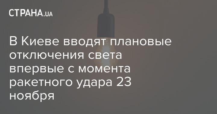 В Киеве вводят плановые отключения света впервые с момента ракетного удара 23 ноября