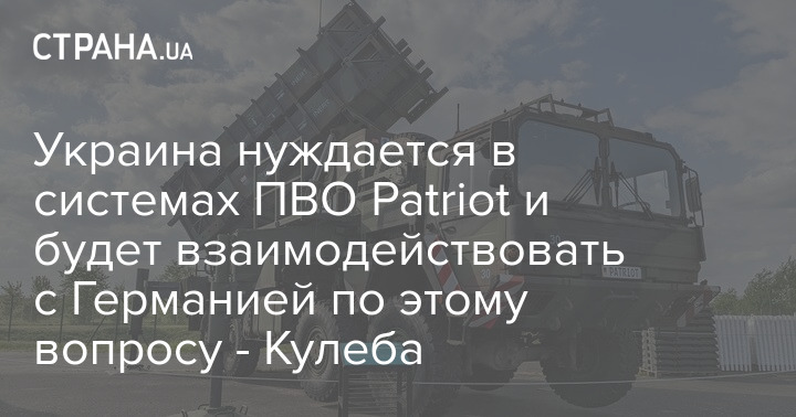 Украина нуждается в системах ПВО Patriot и будет взаимодействовать с Германией по этому вопросу - Кулеба