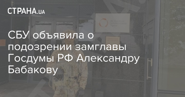 По информации источников "Страны" в СБУ, сегодня Служба объявила о подозрении замглавы Госдумы РФ Александру Бабакову, в компании которого на днях проводились обыски.