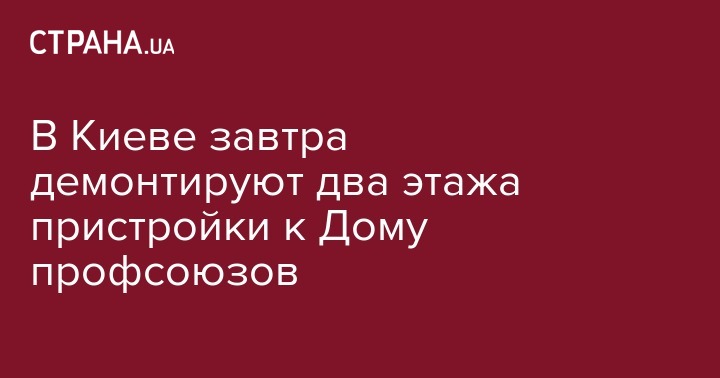Завтра киевские власти демонтируют два незаконно надстроенных этажа над Домом профсоюзов. Об этом на своей странице в Facebook сообщил советник мэра Киева Дмитрий Белоцерковец.