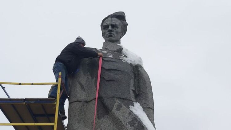 В Хмельницкой области начали работы по демонтажу памятника писателю Николаю Островскому. Фото