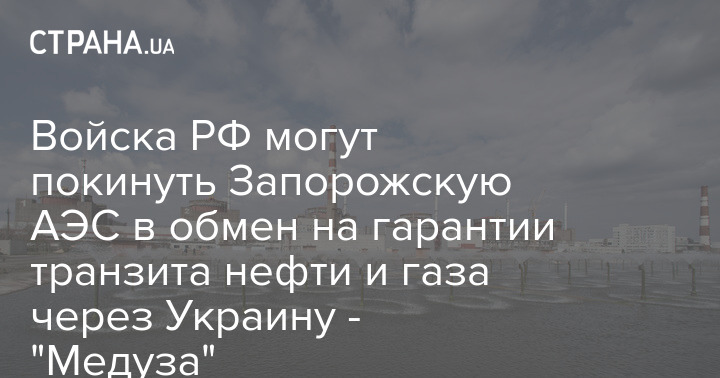 Войска РФ могут покинуть Запорожскую АЭС в обмен на гарантии транзита нефти и газа через Украину - "Медуза"