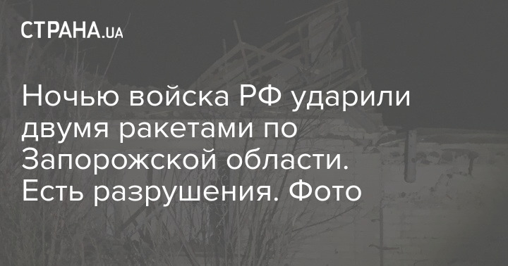 Ночью войска РФ ударили двумя ракетами по Запорожской области. Есть разрушения. Фото