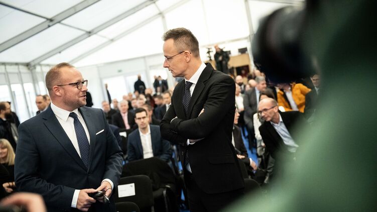 Министр (справа) раскритиковал потолок цен на нефть. Фото: facebook.com/szijjarto.peter.official