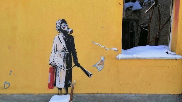 Напомним, Бэнкси создал семь трафаретных изображений на зданиях в столице и в пострадавших от войны населенных пунктах Киевской области: Ирпене, Горенке, Гостомеле и Бородянке.