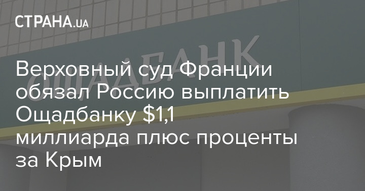 Верховный суд Франции отменил решение Апелляционного суда Парижа и оставил в силе решение Международного арбитража о взыскании с России в пользу Ощадбанка 1,1 млрд долларов плюс проценты.
