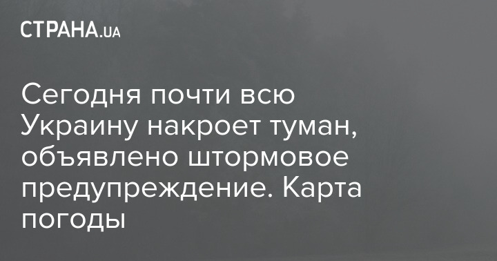 Сегодня почти всю Украину накроет туман, объявлено штормовое предупреждение. Карта погоды