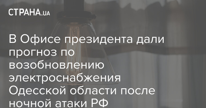 В Офисе президента дали прогноз по возобновлению электроснабжения Одесской области после ночной атаки РФ