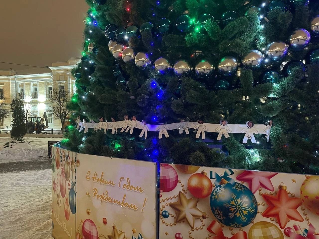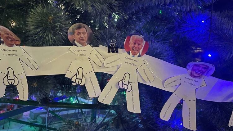 На новогодней елке в центре Твери заметили гирлянду с изображением Владимира Зеленского, а также Джо Байдена, Эммануэля Макрона, Аллы Пугачевой, Максима Галкина и Лаймы Вайкуле. То есть тех - кто поддерживает Украину, либо выступает против войны.