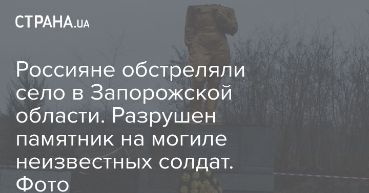 Россияне обстреляли село в Запорожской области. Разрушен памятник на могиле неизвестных солдат. Фото