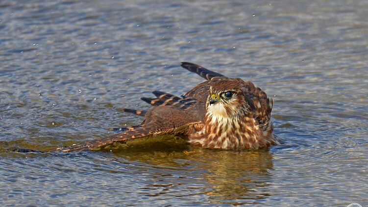 Дербник купается. Фото: facebook.com/zapovidnyk2018