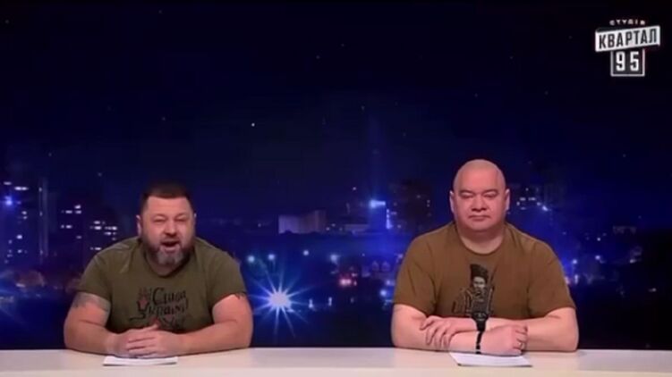 Речь идет о выпуске, где актеры студии "Квартал 95" Евгений Кошевой и Александр Пикалов в роли ведущих новостей говорят о проверках СБУ на объектах УПЦ.