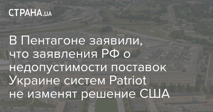 В Пентагоне заявили, что заявления РФ о недопустимости поставок Украине систем Patriot не изменят решение США