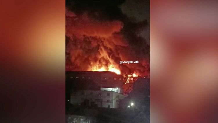 Позже пожарники сообщили, что пожар локализован на площади около 2 тыс. кв. м. По предварительной информации, погибших и пострадавших нет. Тушение пожара продолжается.