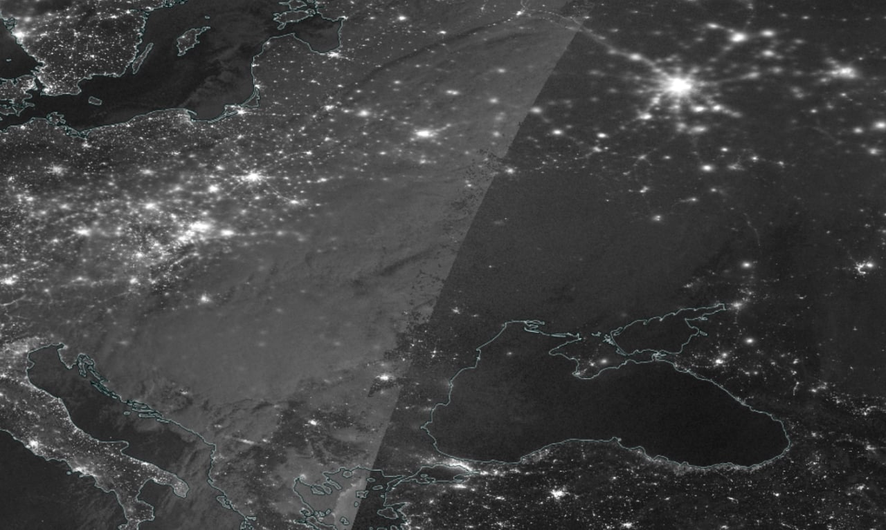По карте видно, что на территории Украины на следующий день после ракетной атаки очень мало огней - в сравнении со всей остальной Европой.