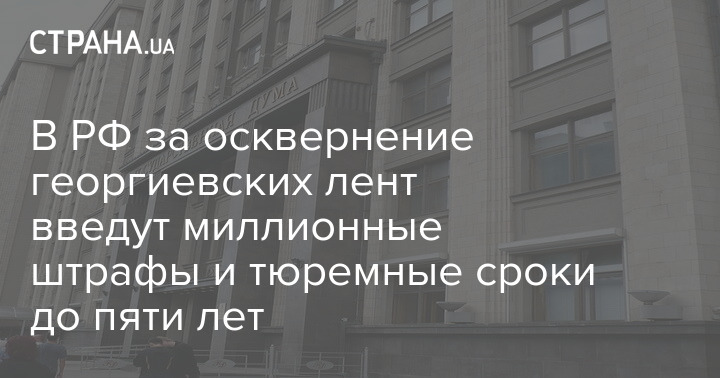 В России за осквернение георгиевских лент введут штрафы до пяти миллионов рублей или до 5 лет колонии. Сегодня Госдума проголосовала за этот законопроект в целом, сообщают российские СМИ.