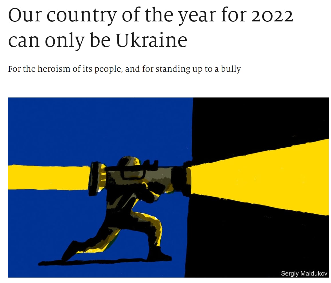 "Эта честь обычно достается стране, которая, на наш взгляд, больше всего улучшилась за предыдущие 12 месяцев. Таким образом, Украина в каком-то смысле является необычным выбором, поскольку жизнь большинства украинцев значительно ухудшилась после неспровоцированного вторжения Владимира Путина в их страну в феврале", - комментирует журнал свой выбор.