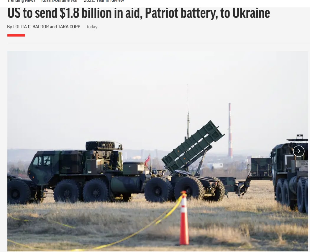 19:46 Госдепартамент США опубликовал список того, что Штаты передают Украине в рамках нового пакета военной помощи. ЗРК Patriot в нем будет одна. Также в списке: