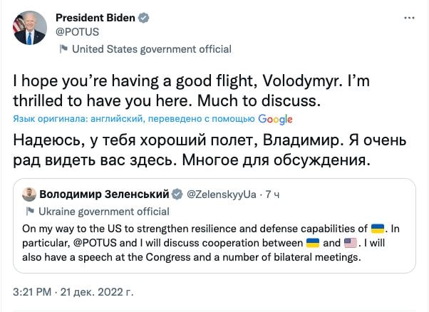 21:29 Начинается встреча Зеленского и Байдена. Первые реплики.
