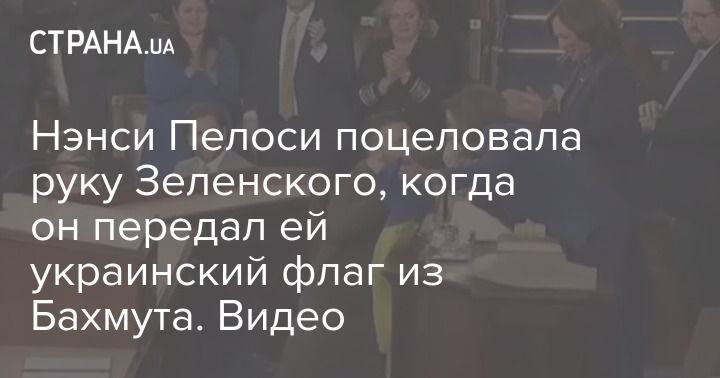 Спикер Конгресса США Нэнси Пелоси поцеловала руку президента Украины Владимира Зеленского, когда он передавал ей украинский флаг из Бахмута.