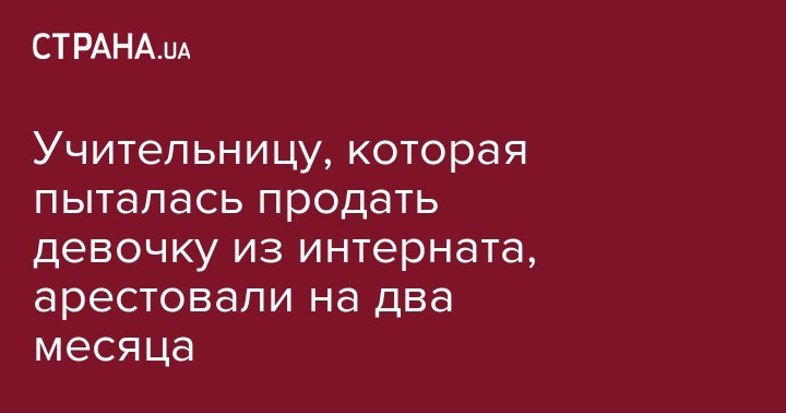 Как сообщала "Страна", в понедельник, 21 ноября правоохранители  пресекли попытку педагога одной из школ-интернатов продать 13-летнюю воспитанницу за $10 тыс. Сотрудницу интерната уже задержали и сообщили о подозрении, передает пресс-служба прокуратуры Харьковской области. Задержанной оказалась 52-летняя преподавательница украинского языка и литературы.