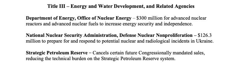 В проекте американского бюджета на 2023 год есть пункт о выделении Украине 126,3 миллионов долларов на "подготовку и реагирование на потенциальные ядерные и радиологические инциденты".