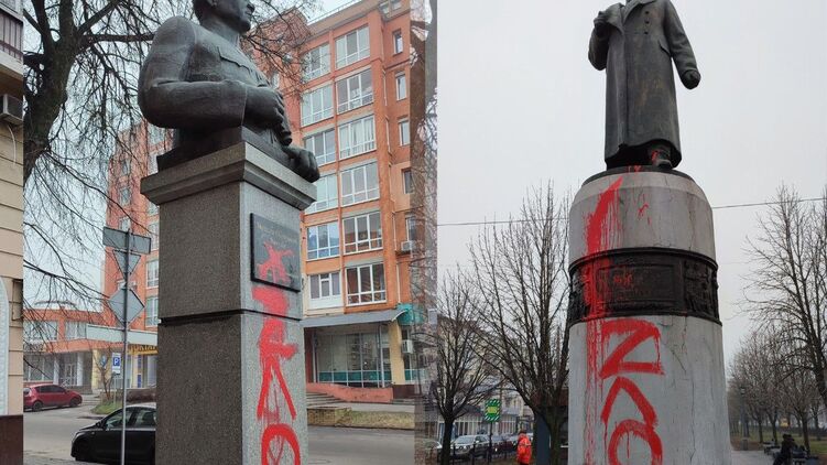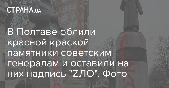 В Полтаве облили красной краской памятники двум советским генералам времён Второй мировой войны - Николаю Ватутину и Алексею Зыгину.