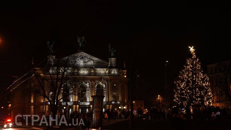 Несмотря на то, что в городе экономят электроэнергию, сегодня в честь Рождества в центре подсветили елку и оперный театр. Центр Львова из-за праздника полностью перекрыт.
