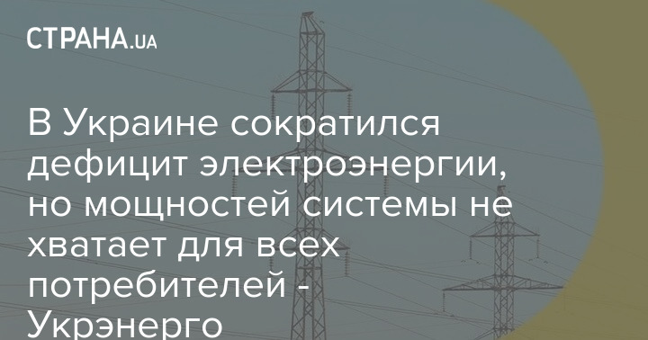 В украинской энергосистеме по состоянию на 27 декабря сократился дефицит мощностей благодаря увеличению объемов производства электростанциями.