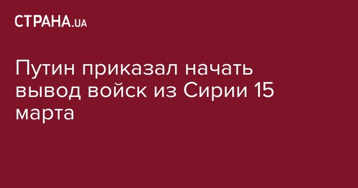 Президент России Владимир Путин приказал начать вывод основных сил России из Сирии 15 марта, сообщает ТАСС.