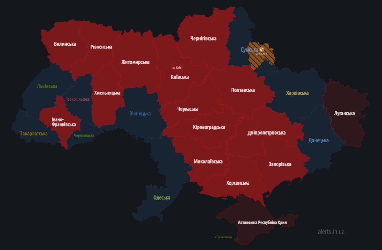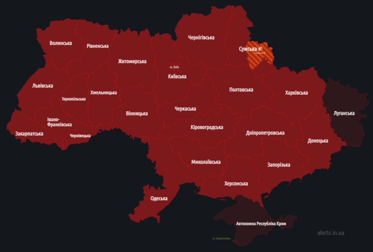 11.32 Воздушная тревога распространилась на всю территорию Украины.