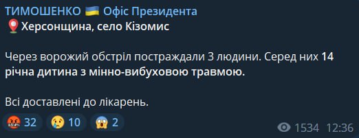 22:10 Губернатор Николаевской области Виталий Ким сообщает о пролетах дронов-камикадзе по направлениям Умани и Одессы.
