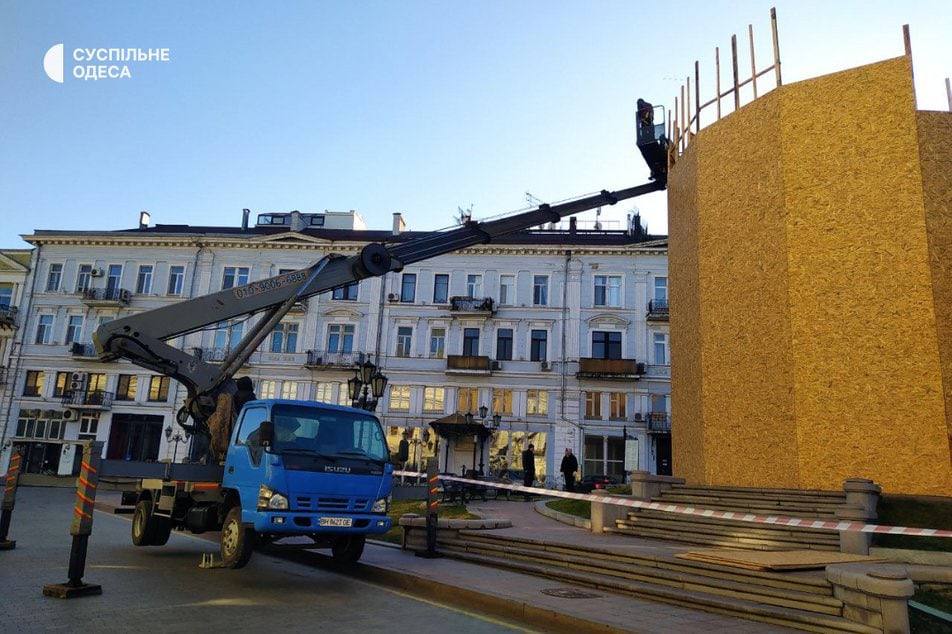 10.20 Одесские СМИ пишут, что у памятника Екатерины начали разбирать деревянный саркофаг.