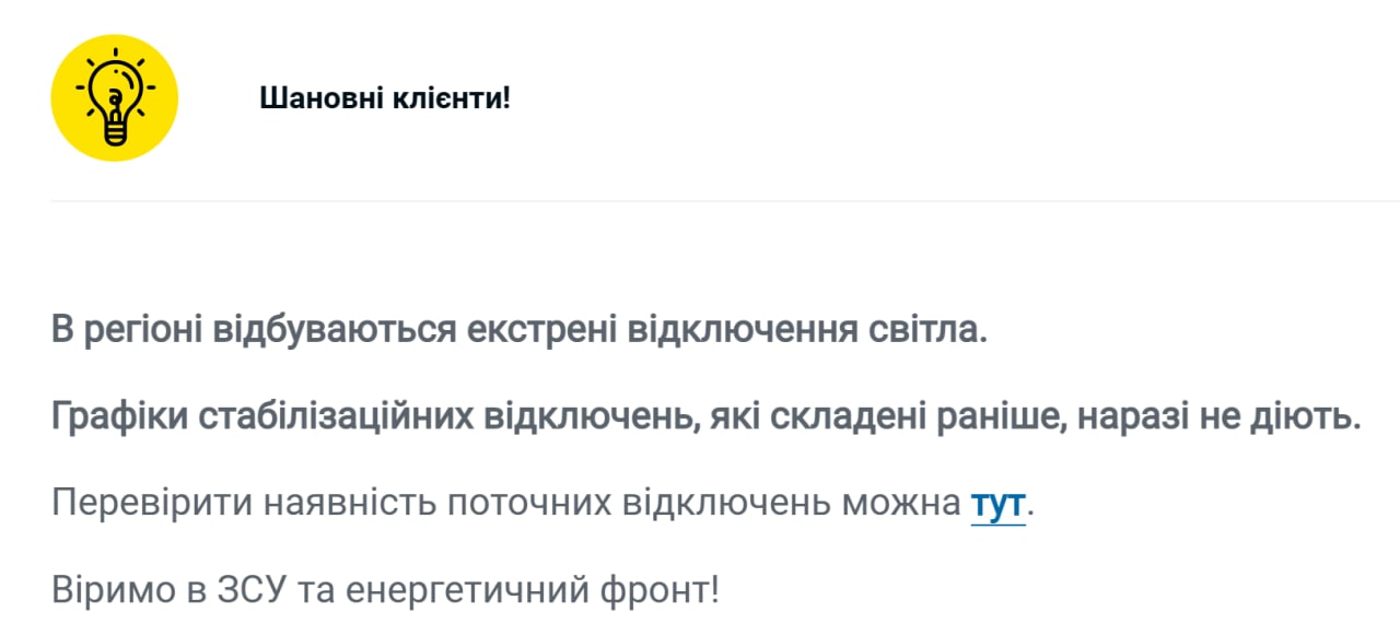 «Самая сложная ситуация остается во Львове и окружающих общинах, а также в Яворовском районе. Работа не прекращается. Ожидаем, что до конца этих суток все жители Львовской области будут получать питание в соответствии с графиками почасовых отключений», – уточнил он.