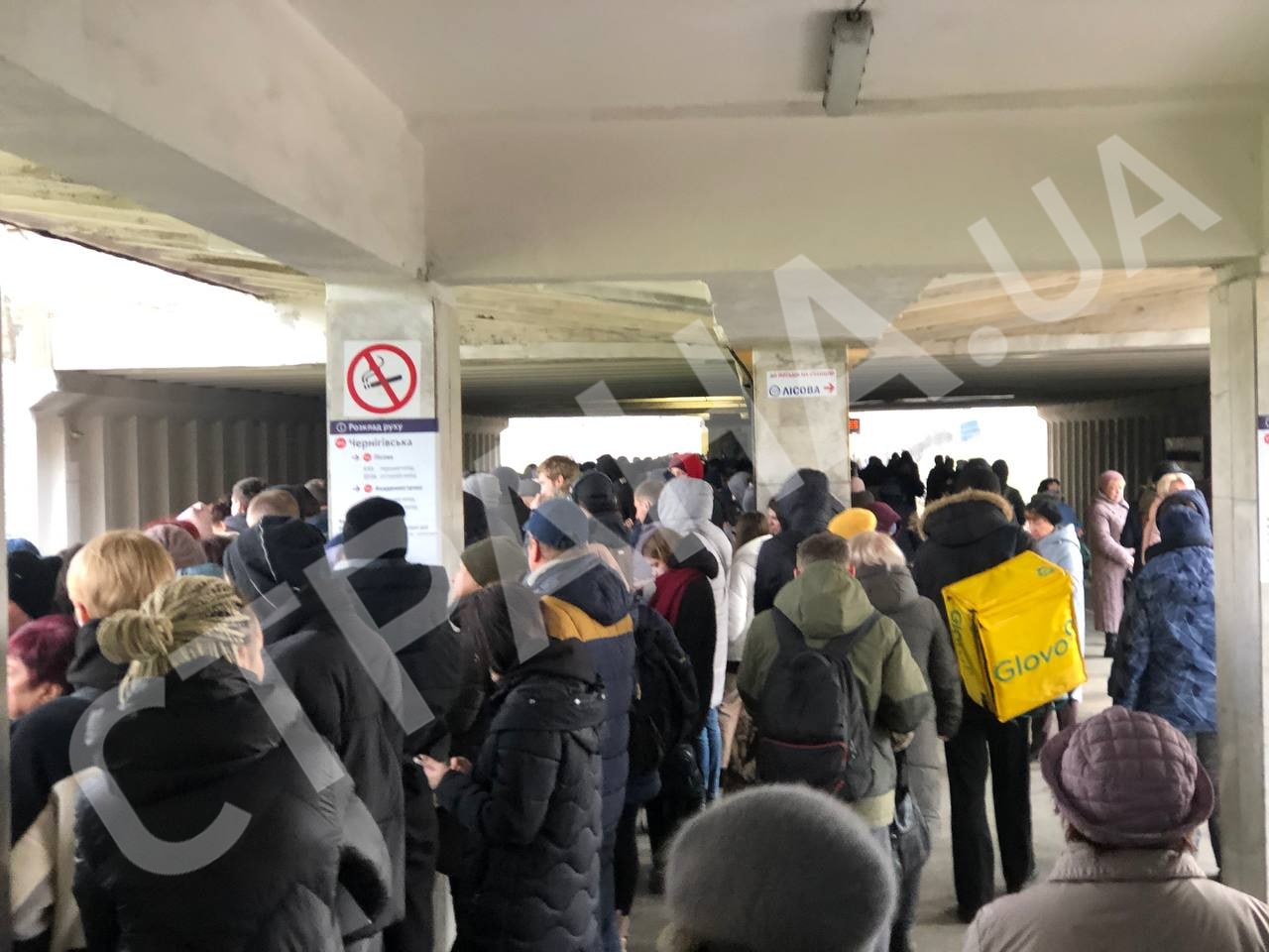 09:37 Сообщают о перебоях со светом в столичной подземке после ракетных ударов. На фото - одна из станций метрополитена в Киеве.