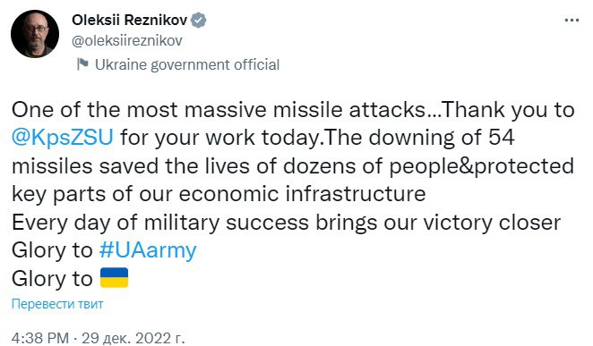 В четверг, 29 декабря, в Украине идет уже 309-й день войны с РФ.