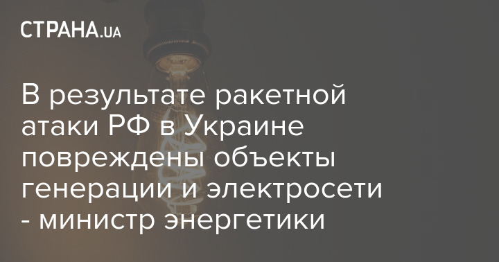 В результате ракетной атаки РФ в Украине повреждены объекты генерации и электросети - министр энергетики