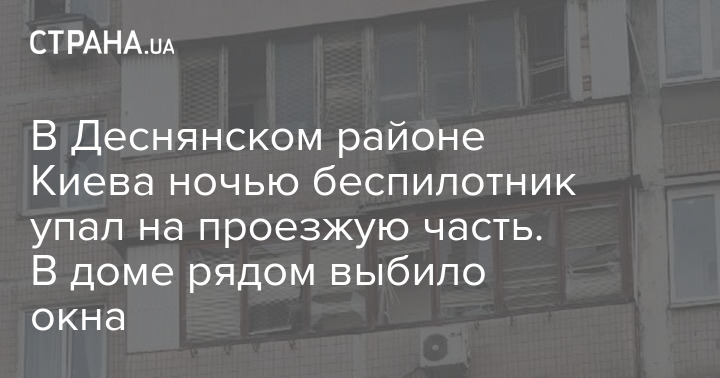 В Деснянском районе Киева ночью беспилотник упал на проезжую часть. В доме рядом выбило окна