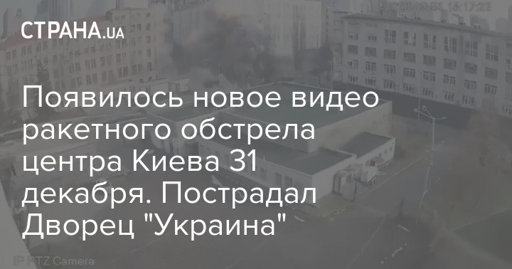 Появилось новое видео обстрела центра Киева 31 декабря. На кадрах с камер наблюдения Дворца "Украина" виден момент прилета в канун Нового года.