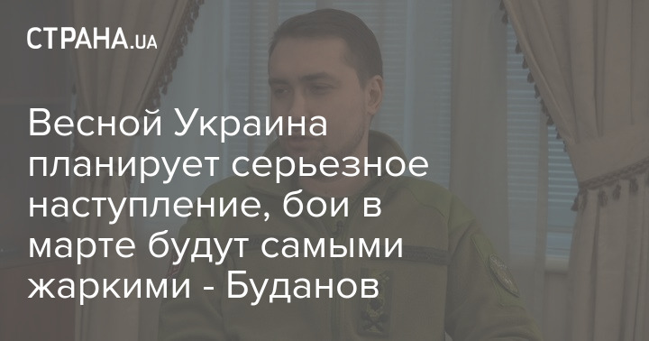 Глава Главного управления разведки Минобороны Кирилл Буданов заявил, что весной Украина планирует серьезное наступление и сказал, что боевые действия в марте будут "самыми жаркими".