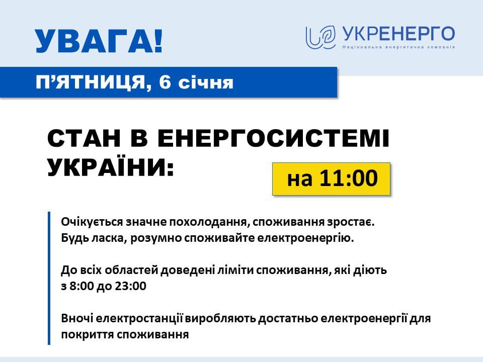 11.15 В Украине с похолоданием растет потребление электричества. Во всех областях введены лимиты потребления с 8 утра до 11 ночи, сообщили в Укрэнерго.
